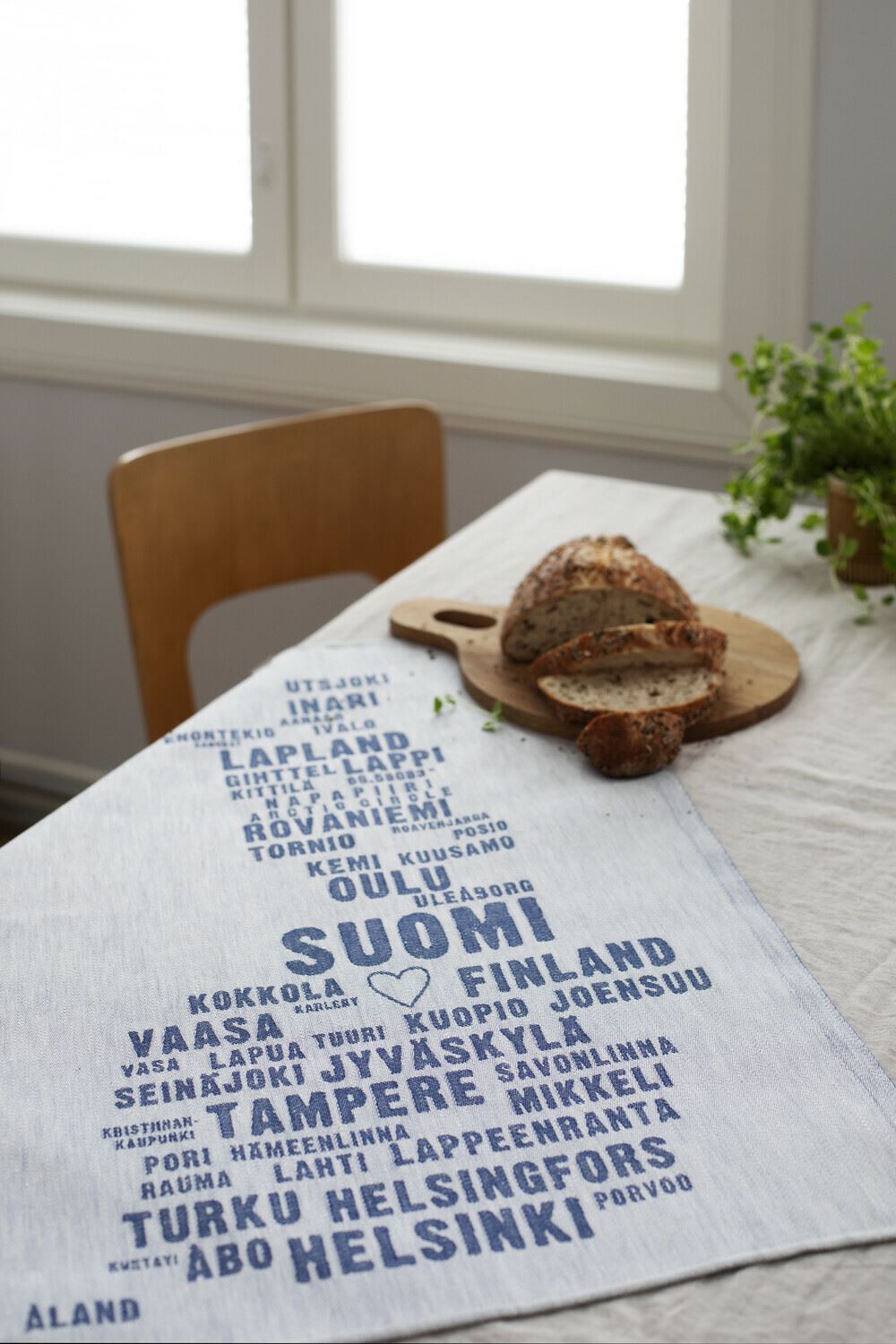 mit finnischen Städtenamen, 60% Leinen / 40% Baumwolle, Grösse 46x70cm