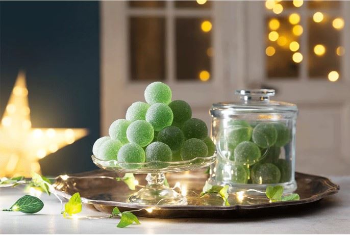 Die grünen Kugeln von Fazer sind ein unwiderstehlich köstlicher Marmeladenklassiker. Luxuriös weich und süss, schmecken die grünen Murmeln zauberhaft nach frischer Birne. Grüne Kugeln sind frei von Gluten, Gelatine und Laktose und auch für Veganer geeignet. Die schönen grünen Kugeln von Fazer sind ein Genuss, wenn es etwas zu feiern gibt.