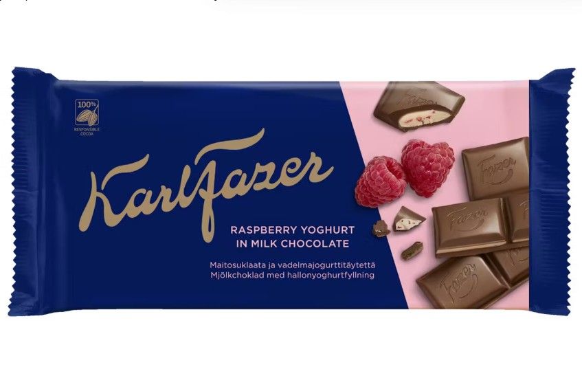 Die Karl Fazer Himbeerjoghurt-Schokolade vereint zartschmelzende Milchschokolade mit einer frischen Himbeerjoghurtfüllung und bringt Sommergenuss auf Ihren Gaumen. Finnlands beliebteste Schokolade seit 1922. Beste Zutaten garantieren ihren einzigartigen, vollmundigen Geschmack. Und das Beste: Alle köstlichen Fazer-Schokoladen werden aus 100% verantwortungsvoll erzeugtem Kakao hergestellt. Teilen Sie einen Teller der Freude mit Freunden oder geniessen Sie ein Stück, das ein Funkeln in Ihre Augenwinkel zaubert.