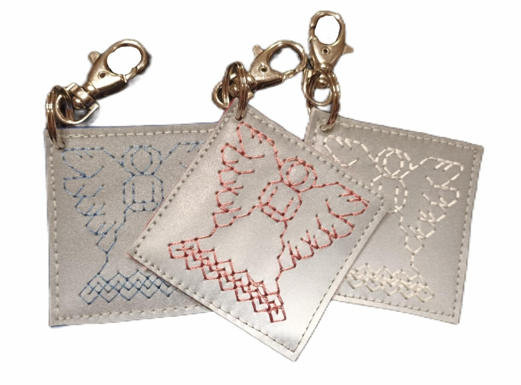 Die Produkte verbinden die alte Karelische Stickereitradition mit den modernen High-Tech-Reflektionsstoffen. Die Produkte sind in Valkeakoski handgefertigt.