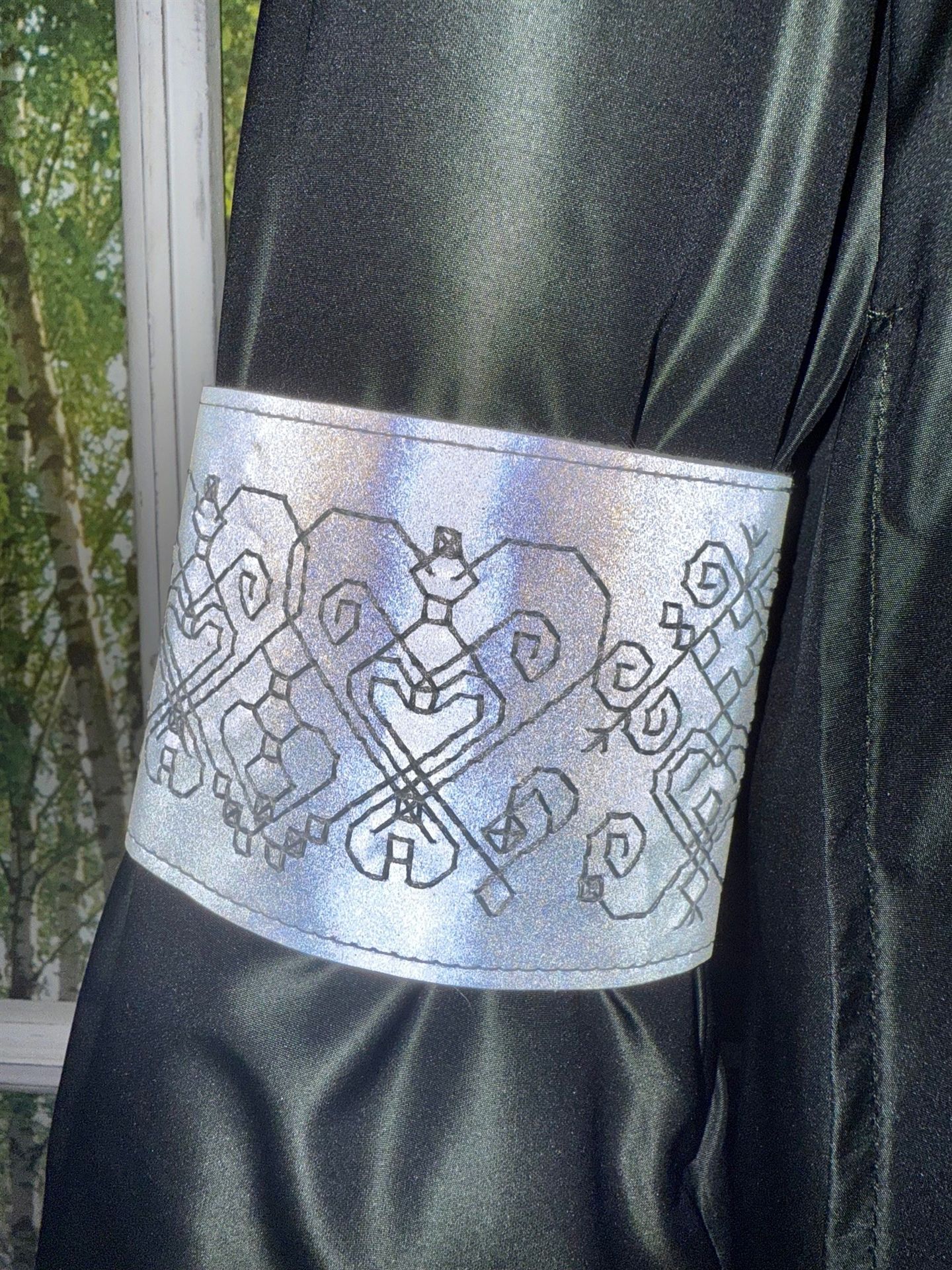 Handgemachter, bestickter Reflektor für den Ärmel (oder Hosenbein) von Kirjosilta.