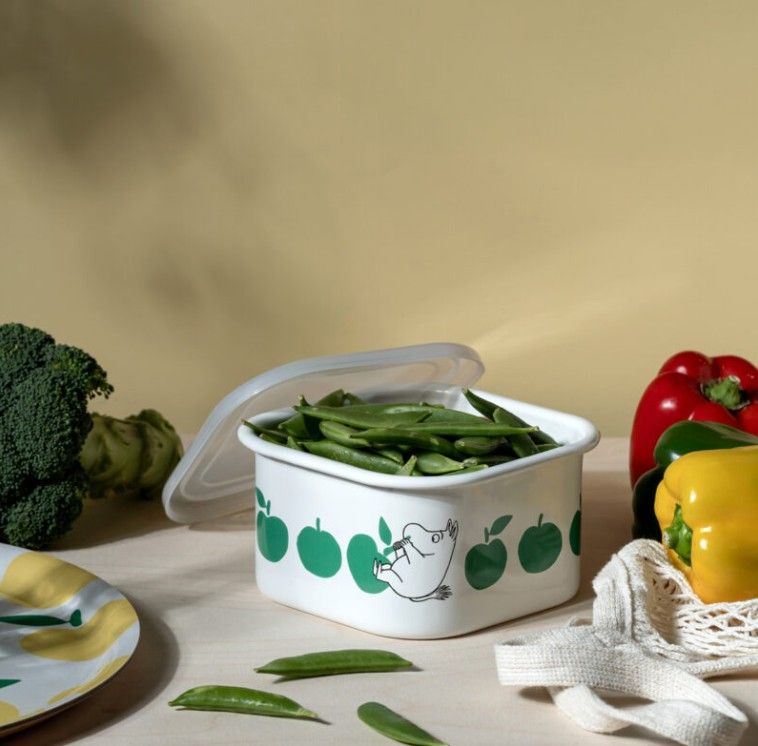 Mumin Emaille Vorratsdose mit Kunststoffdeckel FRÖHLICHE ÄPFELN grün
