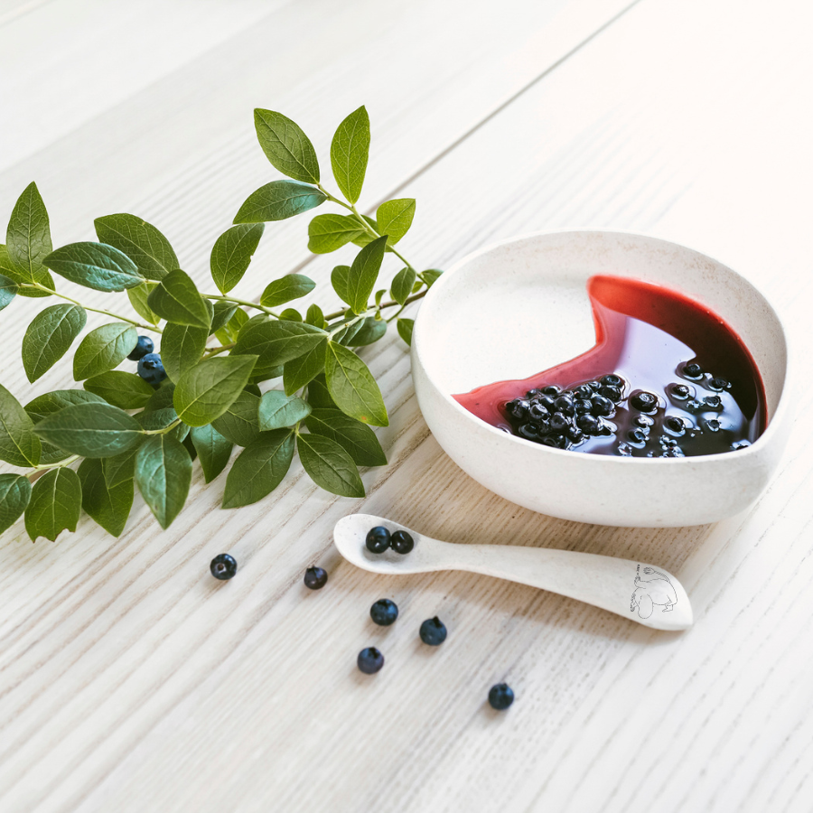 Der Skandino-Löffel hat eine für kleine Münder geeignete Schale. Der breite Griff des Löffels ist ergonomisch, so dass das Kind ihn in verschiedenen Entwicklungsstadien gut greifen kann. Das Produkt und sein Biomaterial sind langlebig, getestet und sicher - und sehr leicht sauber zu halten.