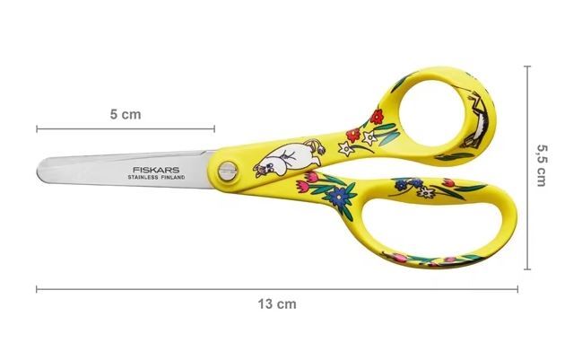 Die charmanten und originellen Mumin-Charaktere erwachen in der verspielten Fiskars-Schere zum Leben. Die Fiskars x Mumin Snorkfräulein-Schere wurde speziell für kleine Kinderhände und kreative Köpfe entwickelt und ist von der Snorkfräulein inspiriert, die an ihre Träume glaubt. Dank der innovativen, abgerundeten Klingen eignet sich diese Schere ideal zum Basteln. Der größere Fingerring und der ergonomische Daumenring bieten optimalen Halt für Kinderfinger. Der optimale Öffnungswinkel der Klingen sorgt für einfache Handhabung, verhindert ein Abrutschen und gewährleistet eine bessere Kontrolle. Klingen und Griffe sind in einer geraden Linie angeordnet, was vertikale Schnitte erleichtert. Die Schere ist für Kinder ab vier Jahren geeignet, denn jedes kreative Genie verdient eine altersgerechte Schere, um seine kreativen Ideen zu verwirklichen. Entworfen in Finnland, von Hand getestet.