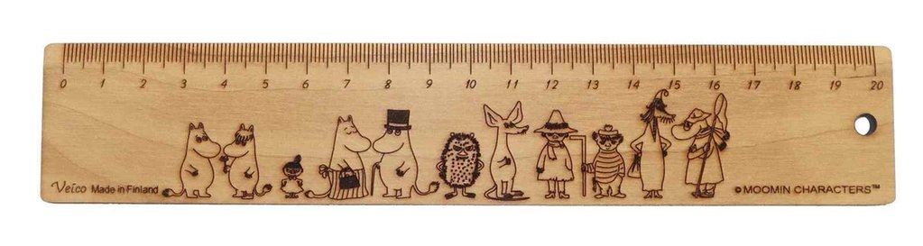 Massstab aus wärmebehandelte Birke mit Mumin Charakter Motiv. Länge 20cm.