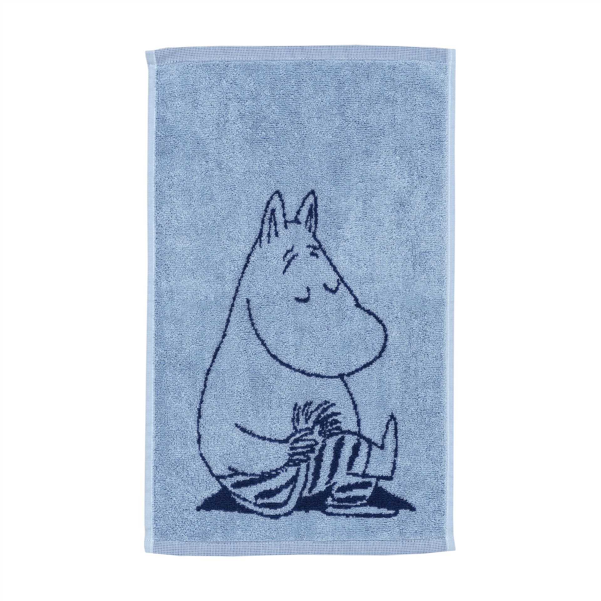 Geniessen Sie die weiche Gemütlichkeit eines marineblauen Mumin-Handtuchs aus Bio-Baumwolle mit dem neugierigen Mumintroll.