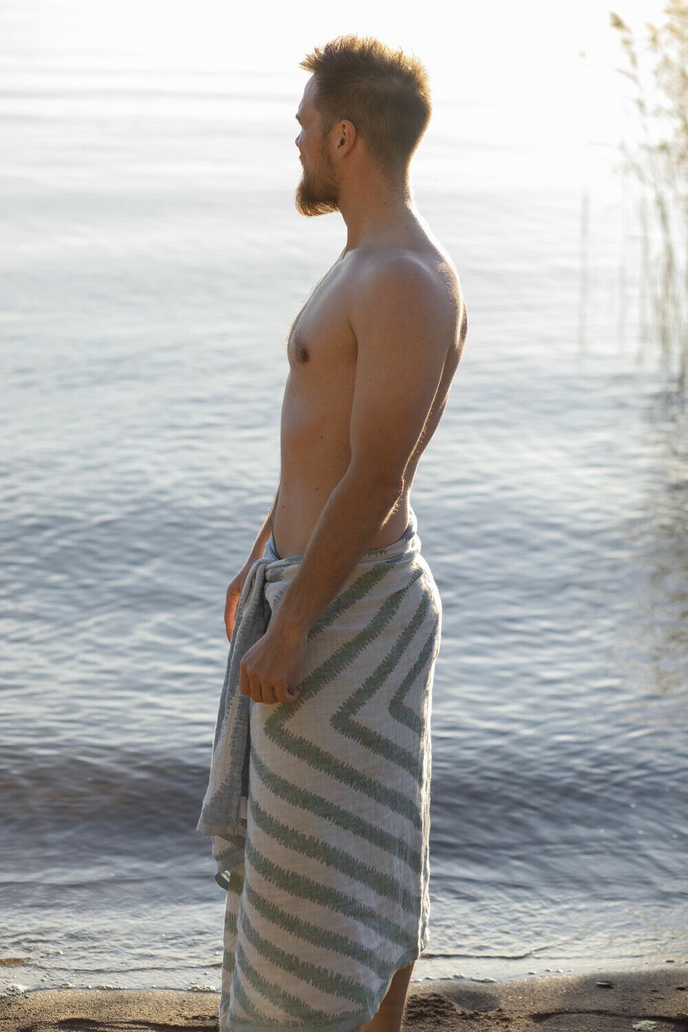 Lapuan Kankurit METSÄLAMPI Handtuch / Saunatuch /Tischdecke weiss-grün-blau
