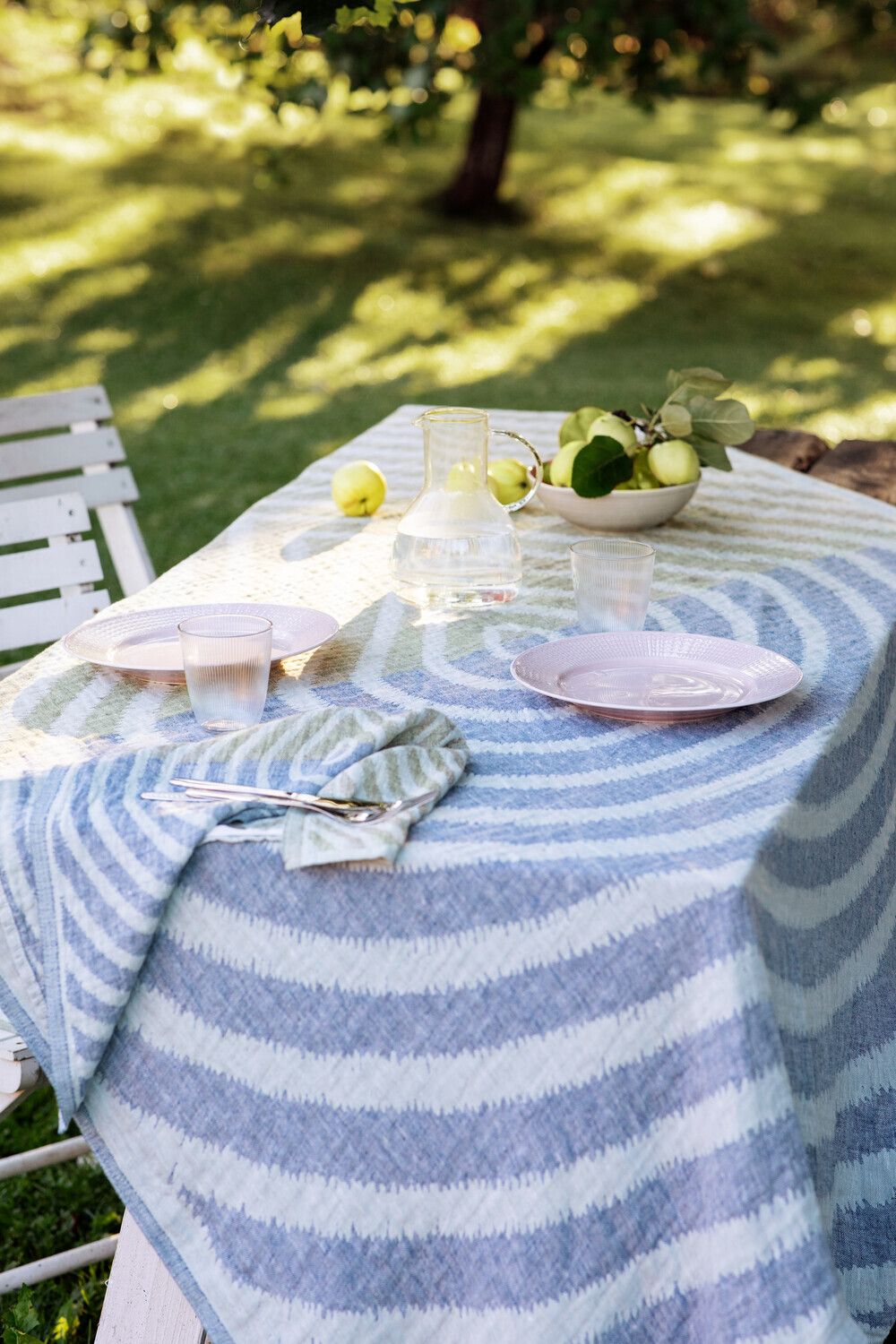 Lapuan Kankurit METSÄLAMPI Leinendecke/Tischtuch grau-heidelbeer-olive