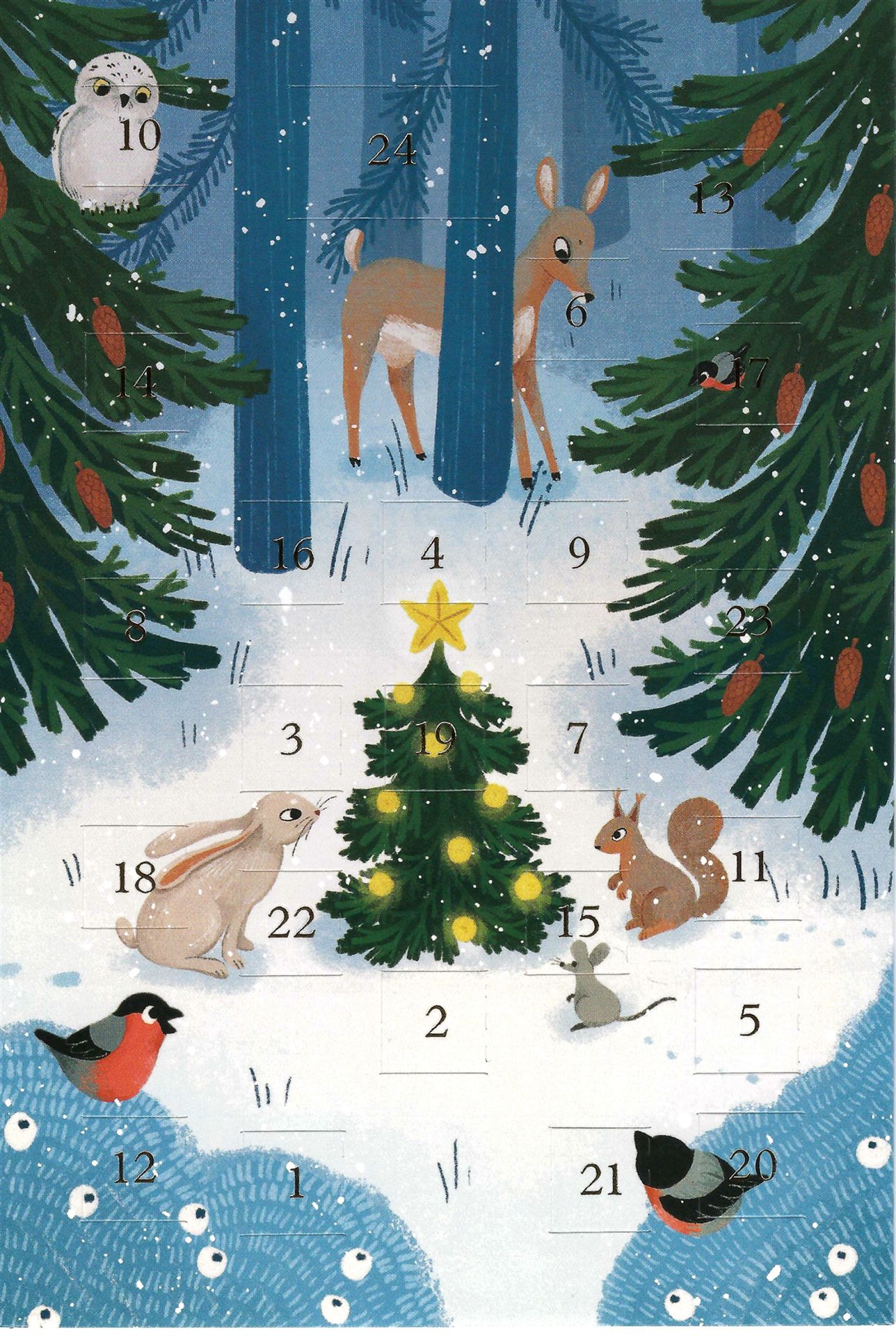Ein zweiteiliger Adventskalender im Kartenformat, der sich ganz einfach per Post verschicken lässt! 24 kleine Türchen, hinter denen sich ein Bild verbirgt. Hochwertiger finnischer Karton. Größe 120 x 170 mm. Goldfolie.