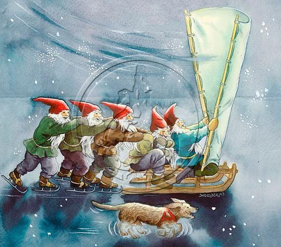 Inge Löök Weihnachtskarte "Wichtel auf dem Eis"