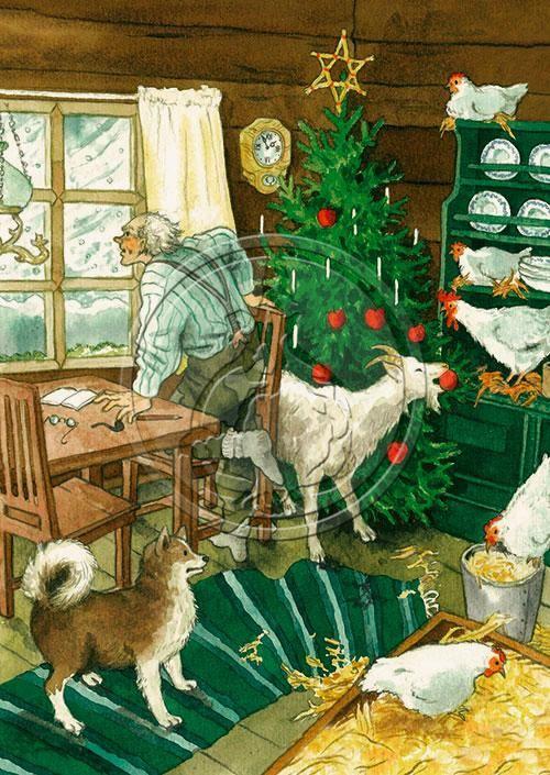 Inge Löök Weihnachtskarte "Tiere in der Stube"