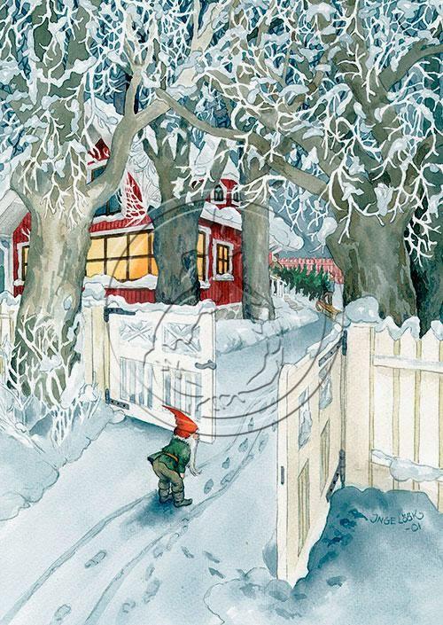 Inge Löök Weihnachtskarte "Wichtel und Spuren im Schnee"