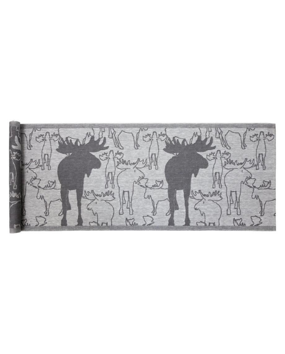 Jokipiin Pellava Liegeschutz KAIKU mit Elch-Motiv weiss-dunkelgrau