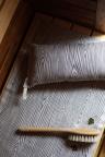 Waschen Sie das neue Textil vor dem Gebrauch, um die Saugfähigkeit zu verbessern. Waschen Sie es separat bei 60°C im Schonwaschgang in reichlich Wasser. 40°C ist ebenfalls eine angemessene Waschtemperatur. Vermeiden Sie Weichspüler und Bleichmittel. Nicht im Trockner trocknen. In feuchtem Zustand neu formen und bügeln. Die Farbe von Naturleinen wird beim Waschen heller. Schrumpfung ca. 5%. Denken Sie daran, die Textilien nach dem Gebrauch immer aus der Sauna zu nehmen, trocknen Sie die Textilien nicht in der Sauna.