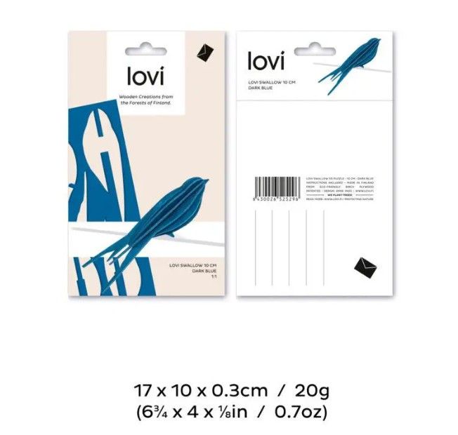 Hergestellt in Finnland. Plastikfrei. Leicht zu versendende, postkartenähnliche Verpackung. Bebilderte Anleitung im Inneren der Verpackung. Patentiert.