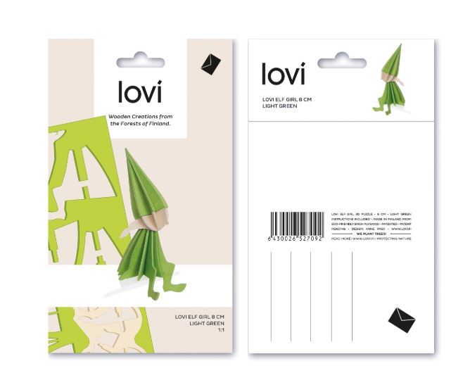 Hergestellt in Finnland. Plastikfrei. Leicht zu versendende, postkartenähnliche Verpackung. Bebilderte Anleitung im Inneren der Verpackung. Patentiert.