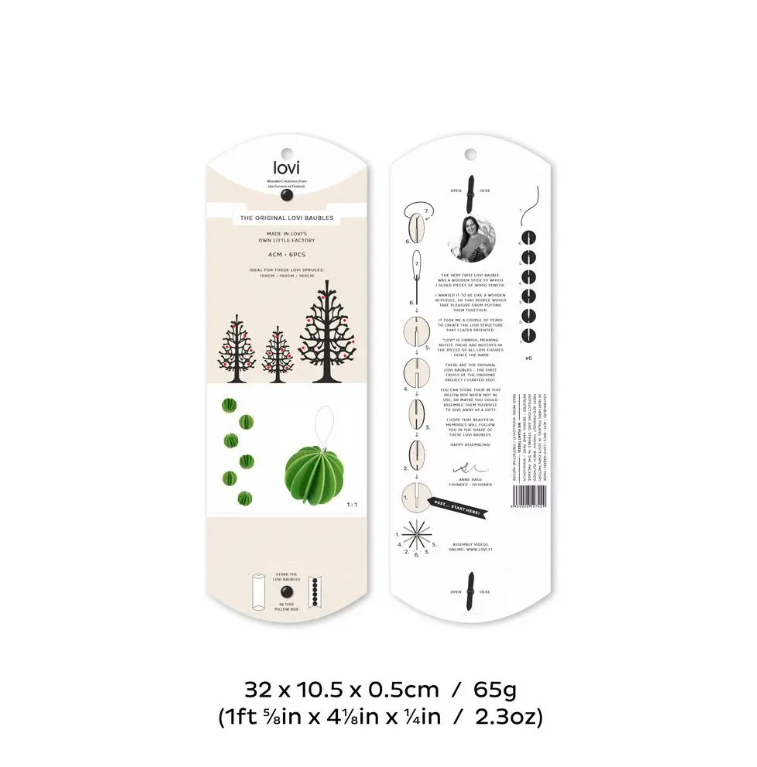 Hergestellt in Finnland. Plastikfrei. Leicht zu versendende, postkartenähnliche Verpackung. Bebilderte Anleitung im Inneren der Verpackung. Patentiert.