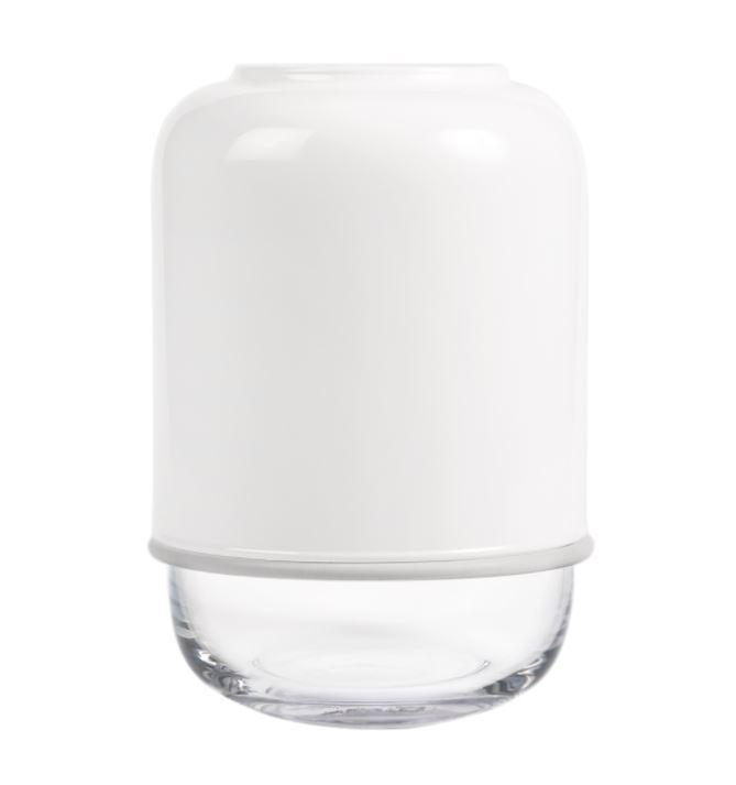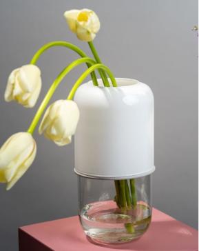 Die Kapsel ist das Ergebnis des "All in One" -Denkens in der Welt der Vasen. Inspiriert vom Happy-Design-Trend wurden sowohl fröhliche als auch intensive Farben als Farbwelten der Vasenteile ausgewählt, um das einfache, reduzierte und ausgewogene Ganze der Glasteile hervorzuheben. Die mundgeblasenen Glasteile der Kapsel sind durch einen dünnen Silikonring verbunden, der durch Bewegen auf der Oberfläche des unteren Glasteils die Höhe der Vase an Ihre jeweilige Zusammensetzung anpasst.