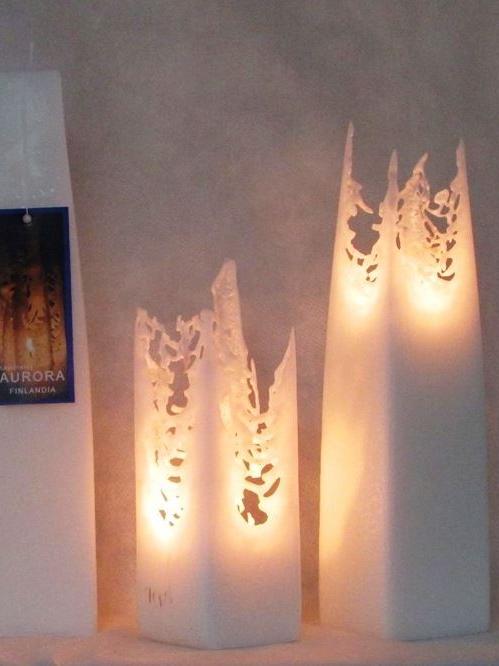 Grösse 14cm, brennt innen und bildet Spitzen um die Flamme, Brenndauer 10 Stunden