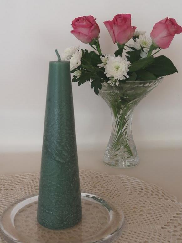 Grösse 23cm, brennt innen und bildet Spitzen um die Flamme, Brenndauer 30 Stunden