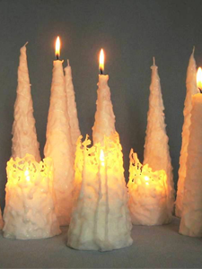 Brenndauer 40h, brennt innen und bildet Spitzen um die Flamme