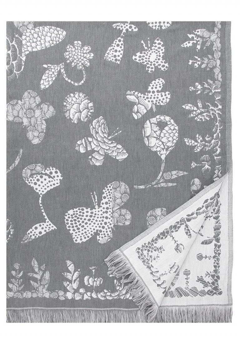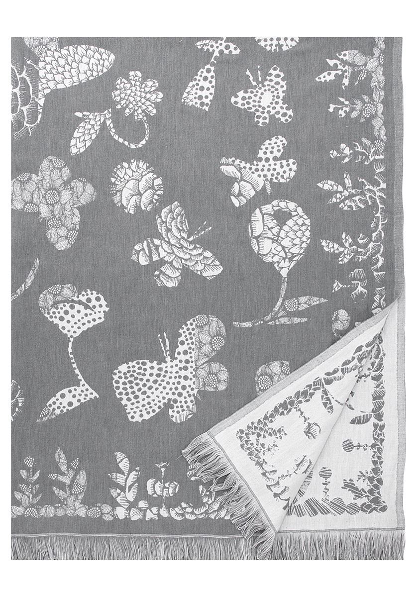Gewobene Hellgrau-Weisse Decke mit sommerlicher Schmetterling-Motiv, 140x240cm
