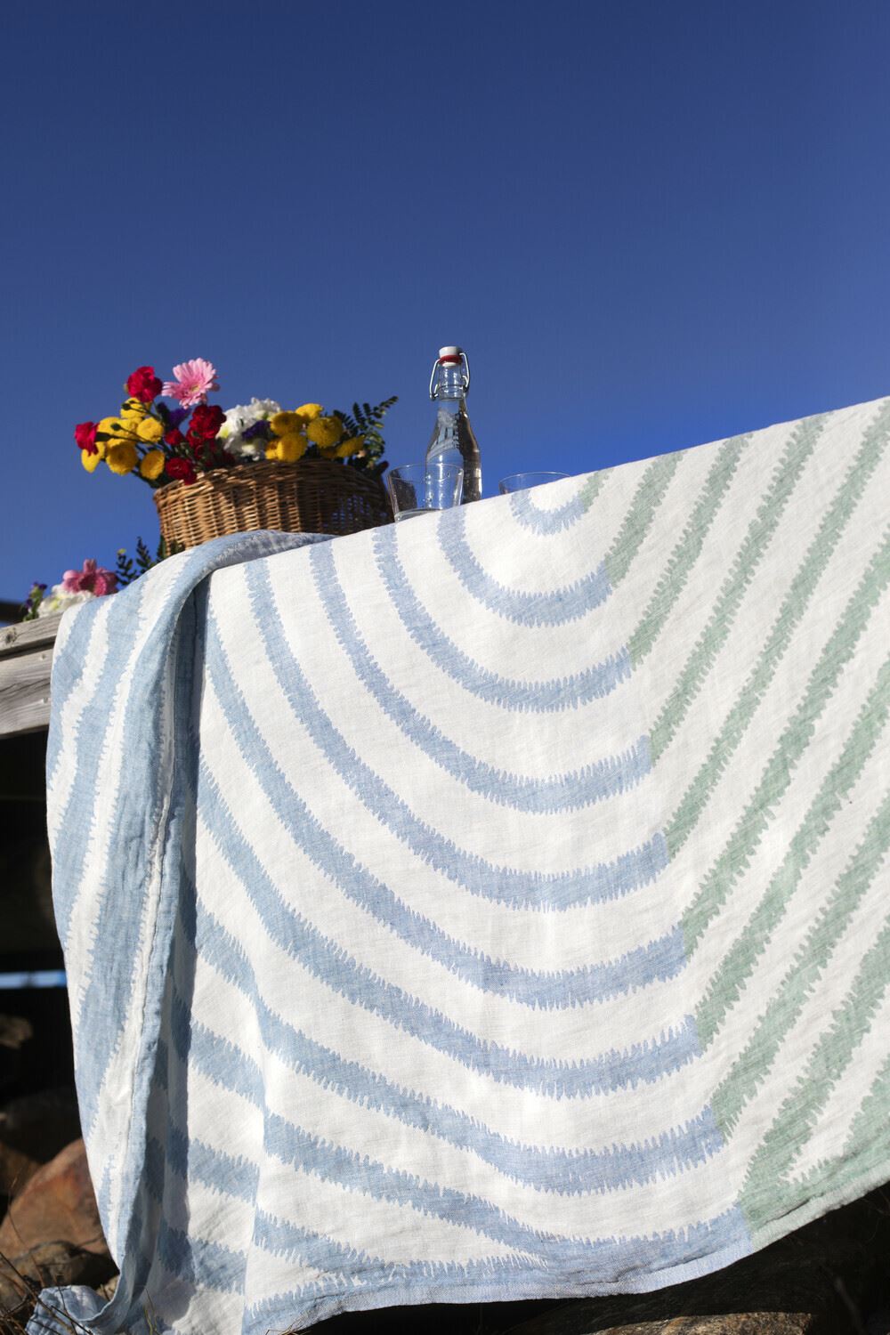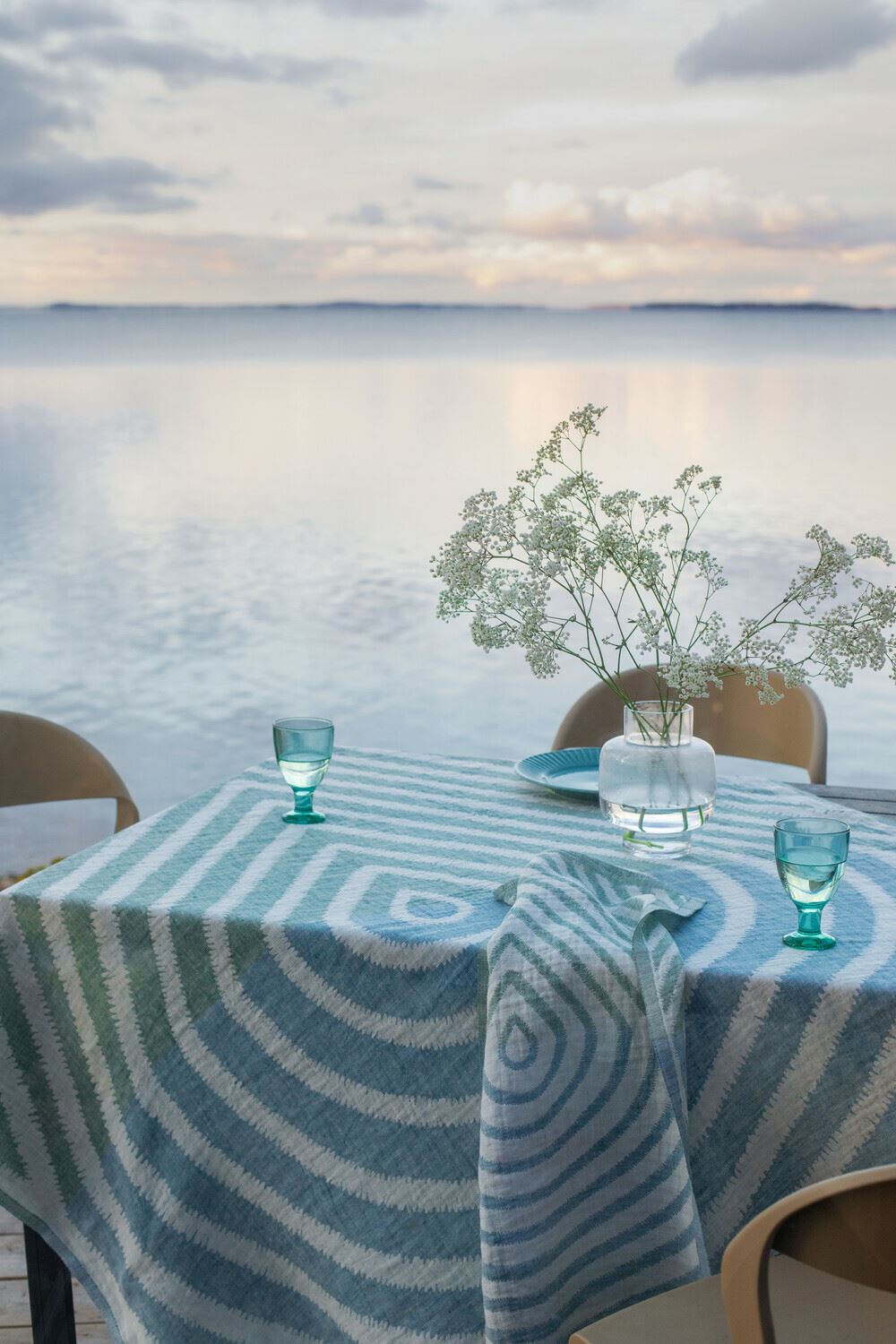 Lapuan Kankurit METSÄLAMPI Leinendecke/Tischtuch weiss-grün-blau