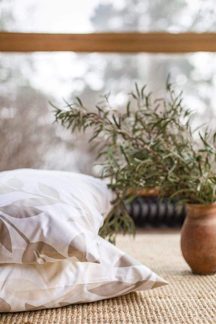 Das Lorbeermuster wird perfekt von einem luxuriösen Baumwollsatin abgestimmt, der den Schläfer verwöhnt und sich glatt und weich auf der Haut anfühlt.