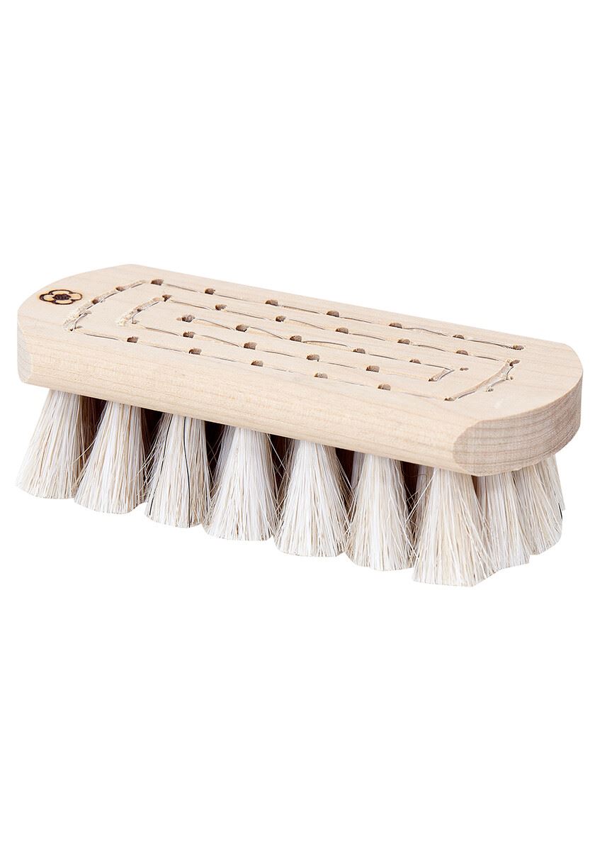 Die Annansilmät-Bürste wird in Finnland von sehbehinderten Menschen hergestellt. Die Bürste wird von Hand gebunden, so dass sich die Quasten nicht lösen können.