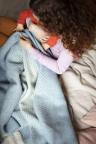 Waschen Sie das Textil nur, wenn es stark verschmutzt ist, ansonsten bringen Sie es eine Weile an die frische Luft. Handwäsche bei max. 30°C oder chemisch reinigen. Bei Verwendung von Pulverwaschmittel dieses in reichlich Wasser auflösen. Tauchen Sie die Decke in das Wasser ein und waschen Sie sie sofort. Vorsichtig auspressen. Nicht schrubben, dehnen oder auswringen. Spülen Sie die Decke gründlich aus und drücken Sie das meiste Wasser aus. Drücken Sie die Decke zwischen Handtüchern aus, bis sie halb trocken ist, und lassen Sie sie an einem luftigen Ort trocknen. Nicht im Wäschetrockner trocknen. Mit einem feuchten Tuch bügeln, max. 150°C.