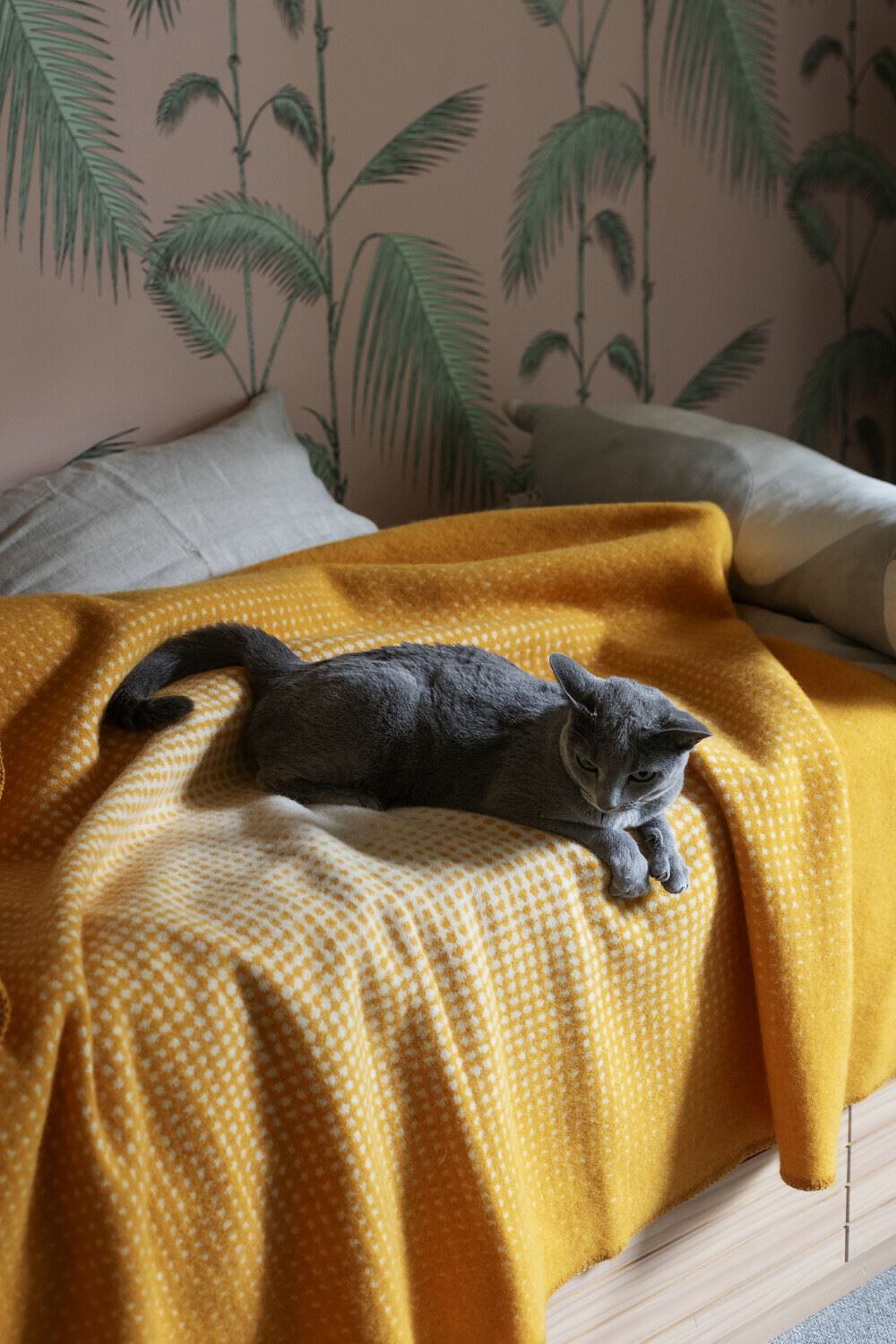 Waschen Sie das Textil nur, wenn es stark verschmutzt ist, ansonsten bringen Sie es eine Weile an die frische Luft. Handwäsche bei max. 30°C oder chemisch reinigen. Bei Verwendung von Pulverwaschmittel dieses in reichlich Wasser auflösen. Tauchen Sie die Decke in das Wasser ein und waschen Sie sie sofort. Vorsichtig auspressen. Nicht schrubben, dehnen oder auswringen. Spülen Sie die Decke gründlich aus und drücken Sie das meiste Wasser aus. Drücken Sie die Decke zwischen Handtüchern aus, bis sie halb trocken ist, und lassen Sie sie an einem luftigen Ort trocknen. Nicht im Wäschetrockner trocknen. Mit einem feuchten Tuch bügeln, max. 150°C.