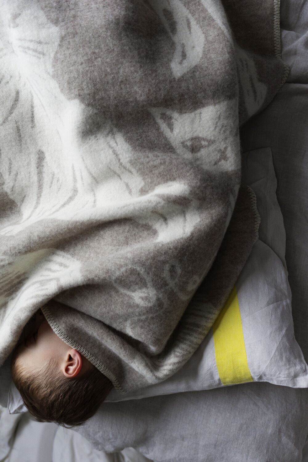 Die Decke ist aus 100% reiner Schurwolle. Sie ist flauschig weich und fühlt sich auch auf nackter Haut angenehm an.